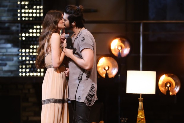 Luan Santana e Camila Queiroz se beijam em gravação de DVD